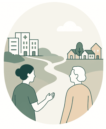 Delen bevinden zich op dit moment al in de tweede horizon. Zorg verschuift steeds vaker naar thuis en de wijk. We zien het in hoe een dochter hoofdverantwoordelijk wordt voor de zorg van haar ouders die nog thuis wonen in hun tachtiger jaren. In hoe een wijkverpleegkundige niet alleen zorg verleent, maar ook schakelt met wonen en het netwerk rondom iemand heen. In hoe technologie niet alleen tijd bespaart, maar mensen helpt om langer zelfstandig te blijven. Dit zijn bij elkaar opgetelde signalen van een systeem dat aan het veranderen is. Tegelijk voelt deze fase vaak ongemakkelijk. Want het nieuwe begint vorm te krijgen, maar het oude is er ook nog. Regels, structuren en financiering zijn vaak nog ingericht op het bestaande (oude) systeem, terwijl de praktijk daar van af begint te wijken. Zorg verandert, maar niet overal in hetzelfde tempo.